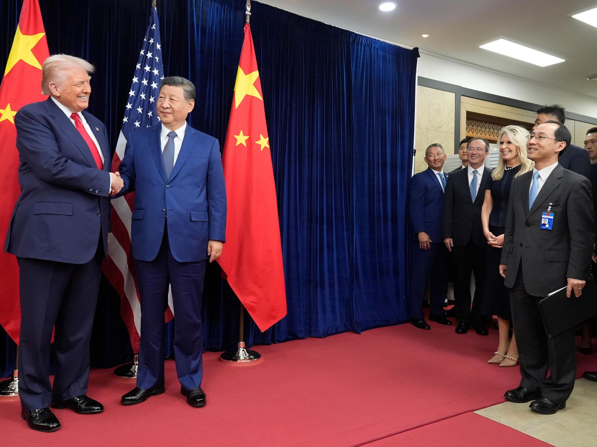 © AP Photo / Mark SchiefelbeinPresident Donald Trump, left, and Chinese President Xi Jinping shake hands before their meeting at Gimhae International Airport in Busan, South Korea, Thursday, Oct. 30, 2025.