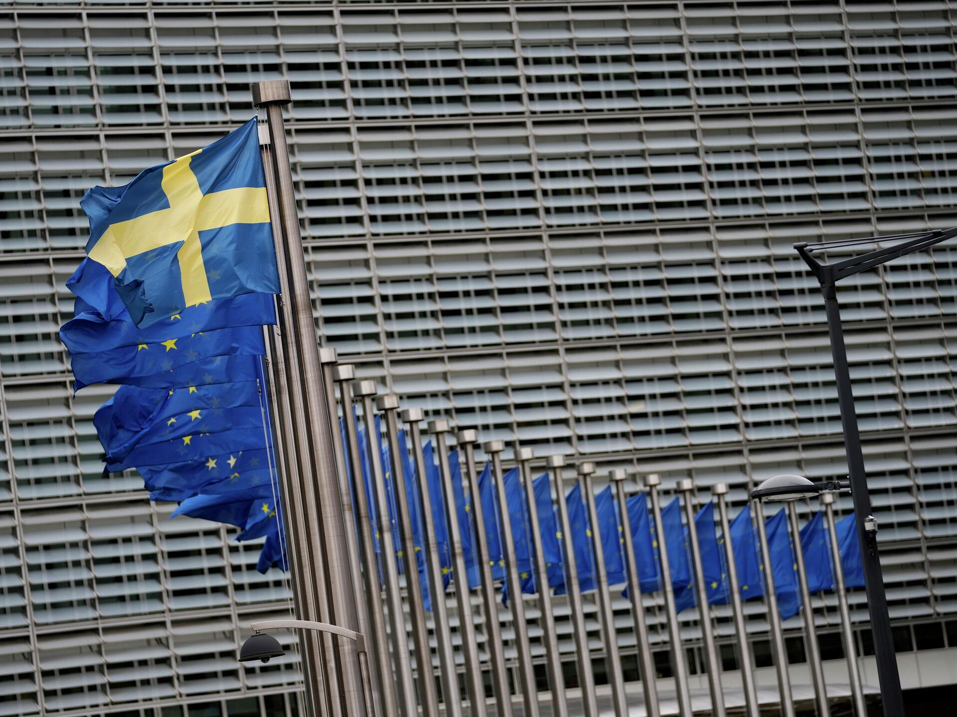 © AP Photo / Virginia MayoThe Swedish and European flags flap in the wind prior to a meeting of European Commission President Ursula von der Leyen and Sweden's Prime Minister Ulf Kristersson at EU headquarters in Brussels, Thursday, Feb. 22, 2024.