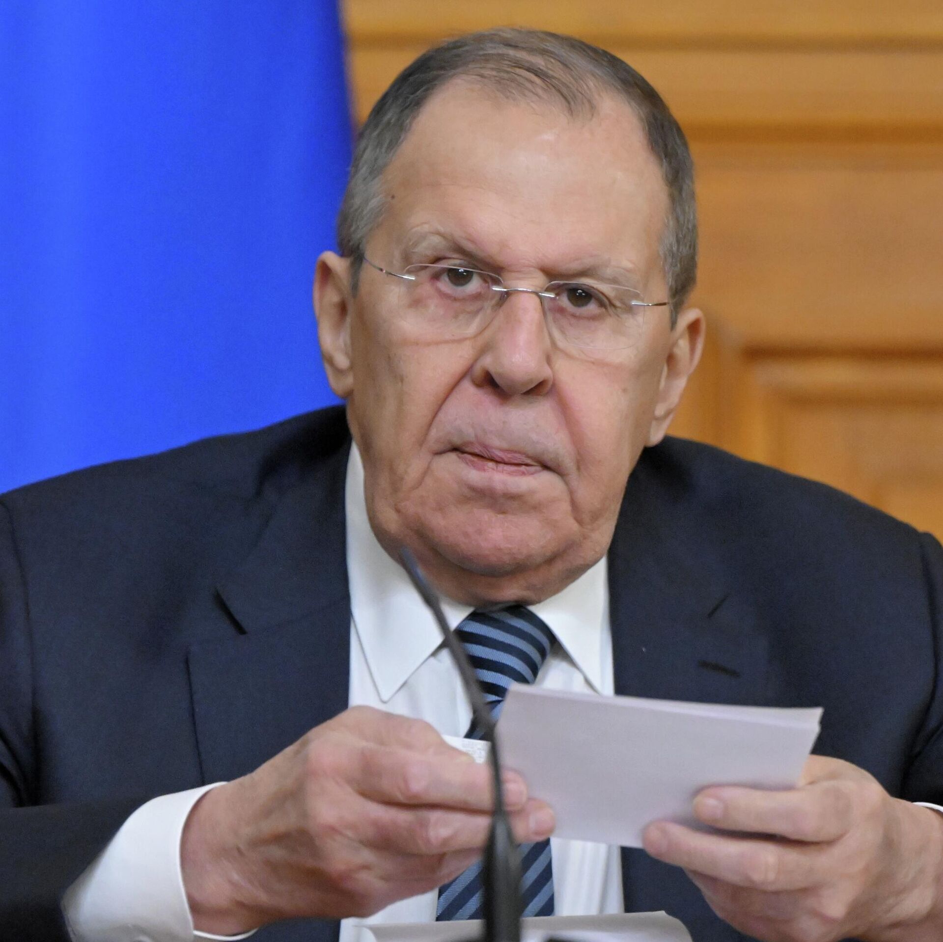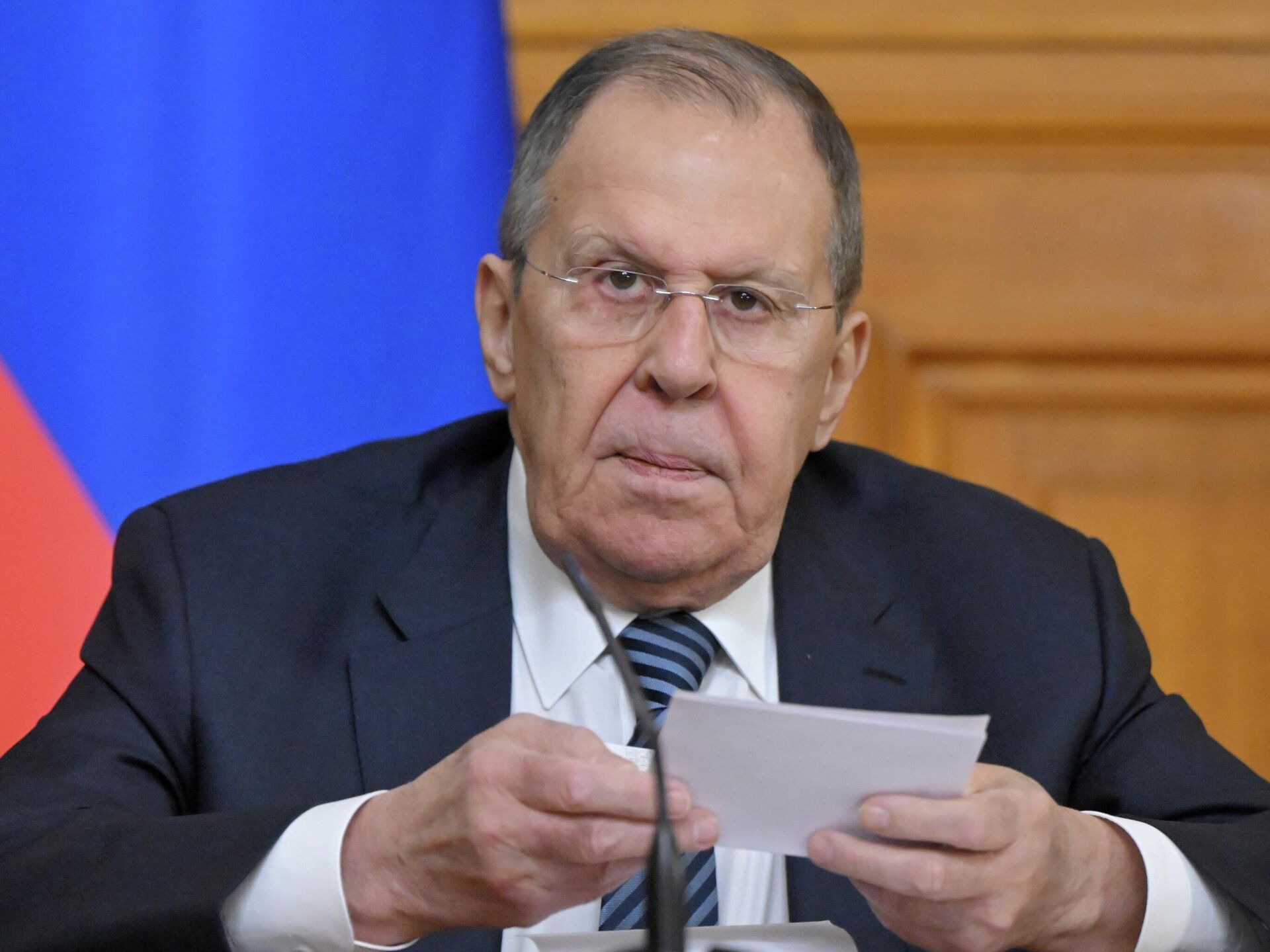 रूस के विदेश मंत्री सर्गे लवरोव मंगलवार को मास्को में एक प्रेस कॉन्फ्रेंस कर रहे हैं, जिसमें रूसी और विदेशी पत्रकार भाग ले रहे हैं।