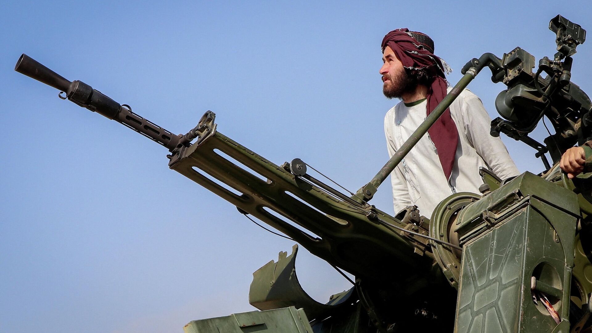 A Taliban soldier stands next to an anti-aircraft gun while on lookout for Pakistani fighter jets, in Khost province, Afghanistan, February 27, 2026. - Sputnik भारत, 1920, 02.03.2026