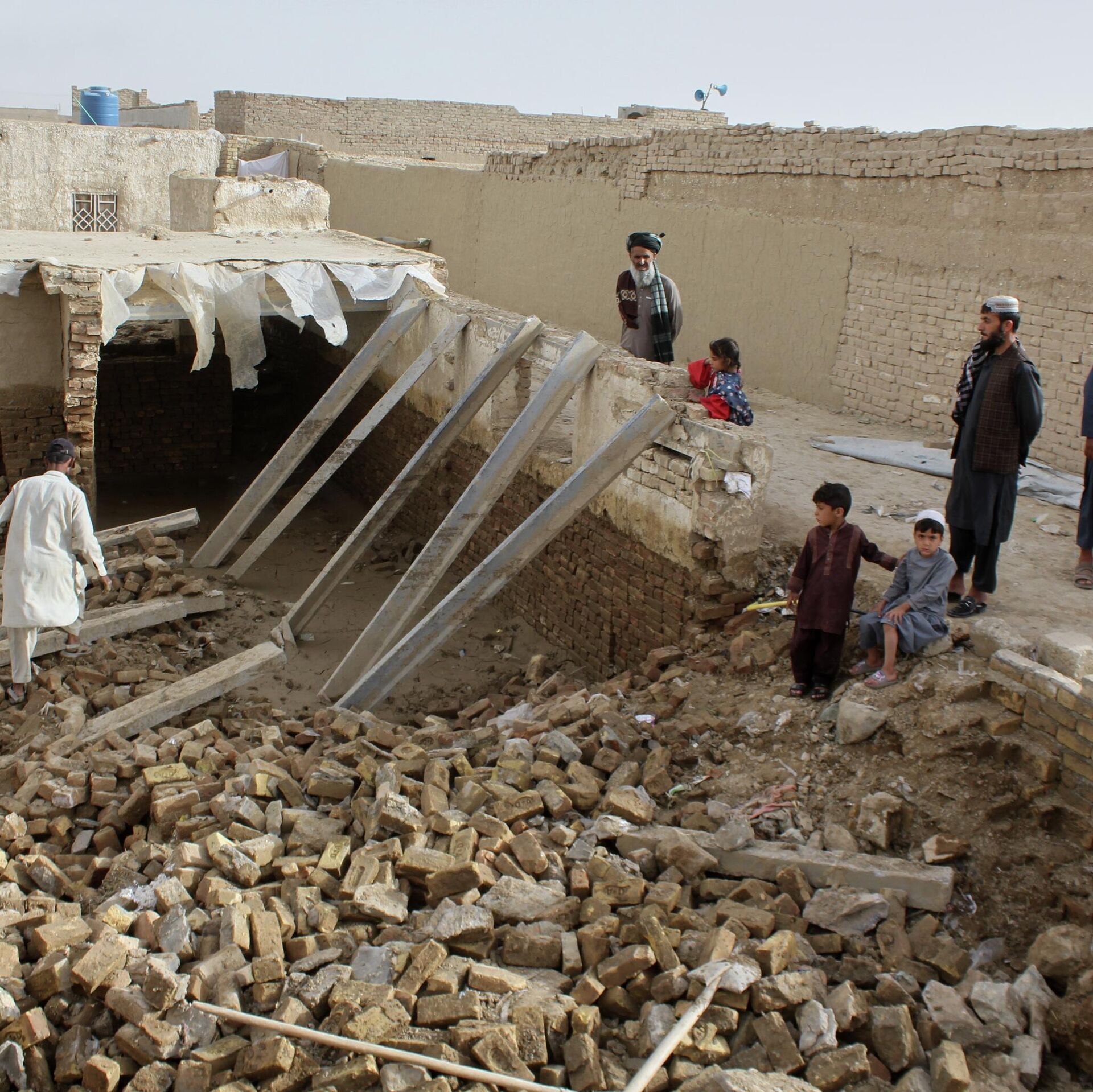 Locals inspect a damaged house following floods, landslides and thunderstorms in Kandahar province, Afghanistan, Sunday, March 29, 2026.  - Sputnik भारत, 1920, 01.04.2026